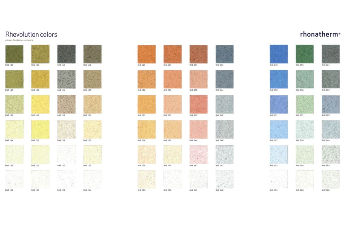 - Diseño cromático optimizado, mediante la carta Rhevolution Colors, con colores de IR superior al 25%, que reducen el calentamiento superficial de la fachada.