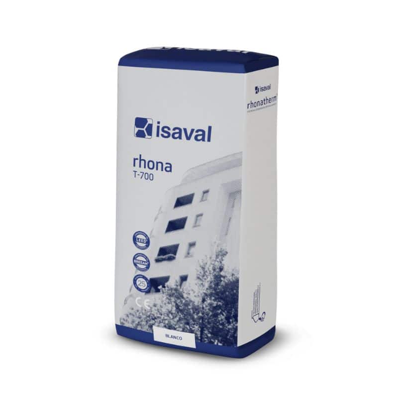 - Rhona T-700: mortero polivalente para pegado y capa base, reforzado con fibra de vidrio y mayor resistencia al impacto.