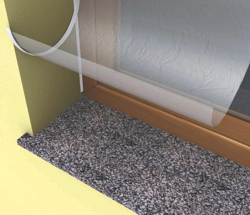 El perfil de ventana SATE o Perfil Marco Ventana sirve de guía para la terminación y protección de ventanas y puertas durante la ejecución, además de junta elástica del sistema. Pasos.