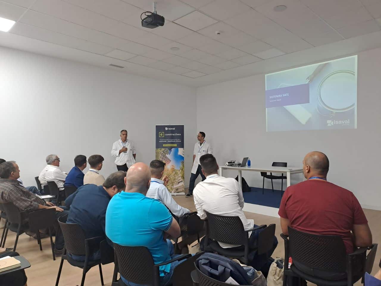 Desde el Departamento Técnico de Isaval, Rafael Vallejo, director técnico de la compañía, y Sergio Huertas, director de I+D+i, impartieron una sesión técnica detallada sobre los componentes del sistema SATE, resolviendo dudas y presentando las novedades que se lanzarán en 2024. De esta manera, los maestros SATE pudieron conocer de primera mano los productos en los que se está trabajando y que podrán aplicar para que su trabajo sea, todavía más, sobresaliente en los próximos años.